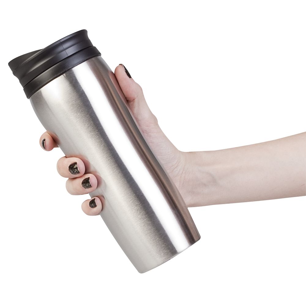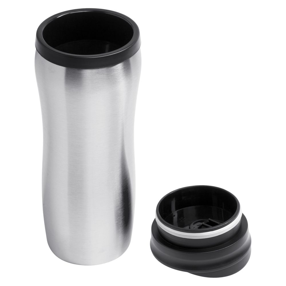Двухслойная конструкция из пластика внутри и нержавеющей стали снаружи сохраняет напитки горячими в течение 1 часа, холодными — 2 часов.