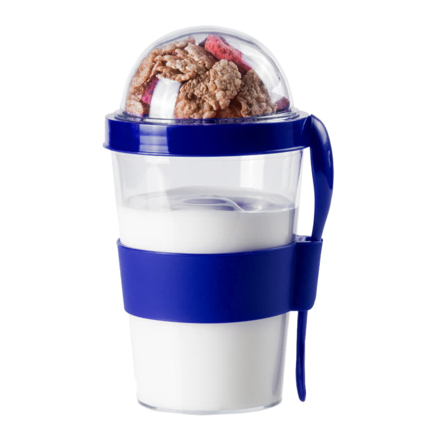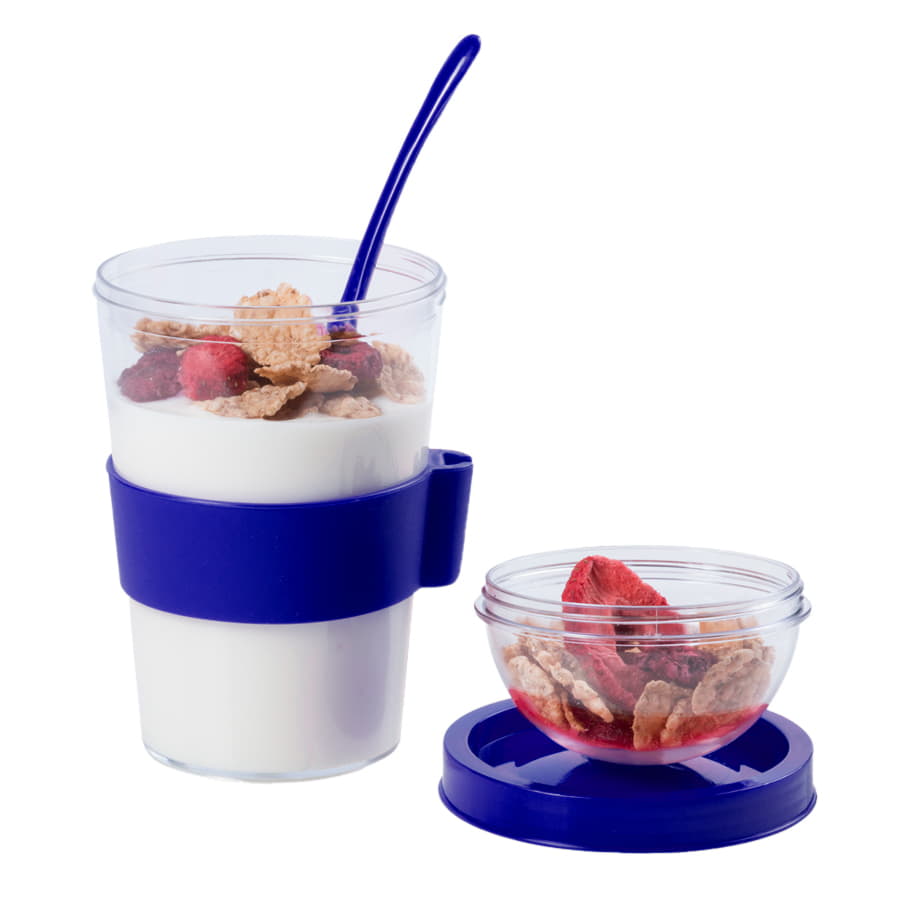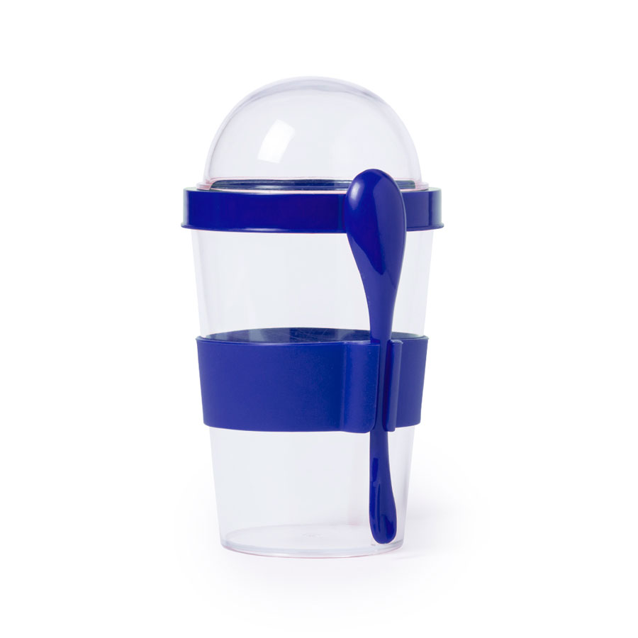 Контейнер для еды YOPLAT с ложкой, пластик, синий