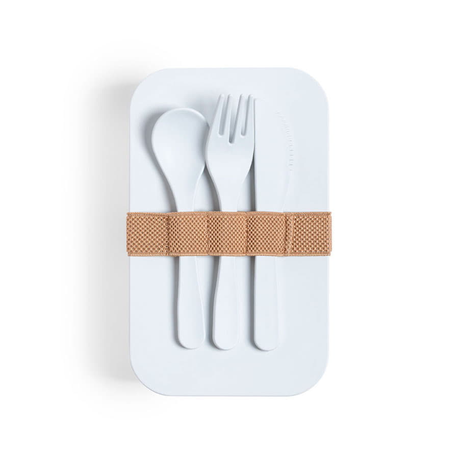 Ланч-бокс MOLKAS, ложка, вилка нож в комплекте, биоразлагаемый пластик, белый