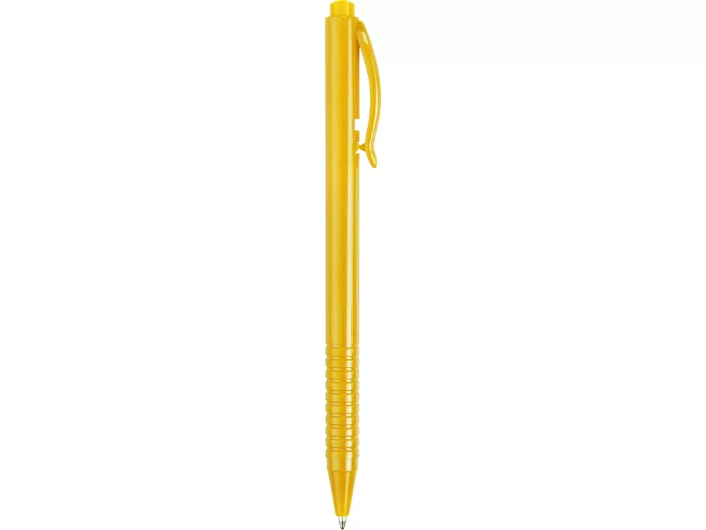 Суперлегкая шариковая ручка насыщенного желтого оттенка привлечет взгляд. А напечатанная на ней контрастным цветом информация запомнится легко и надолго.