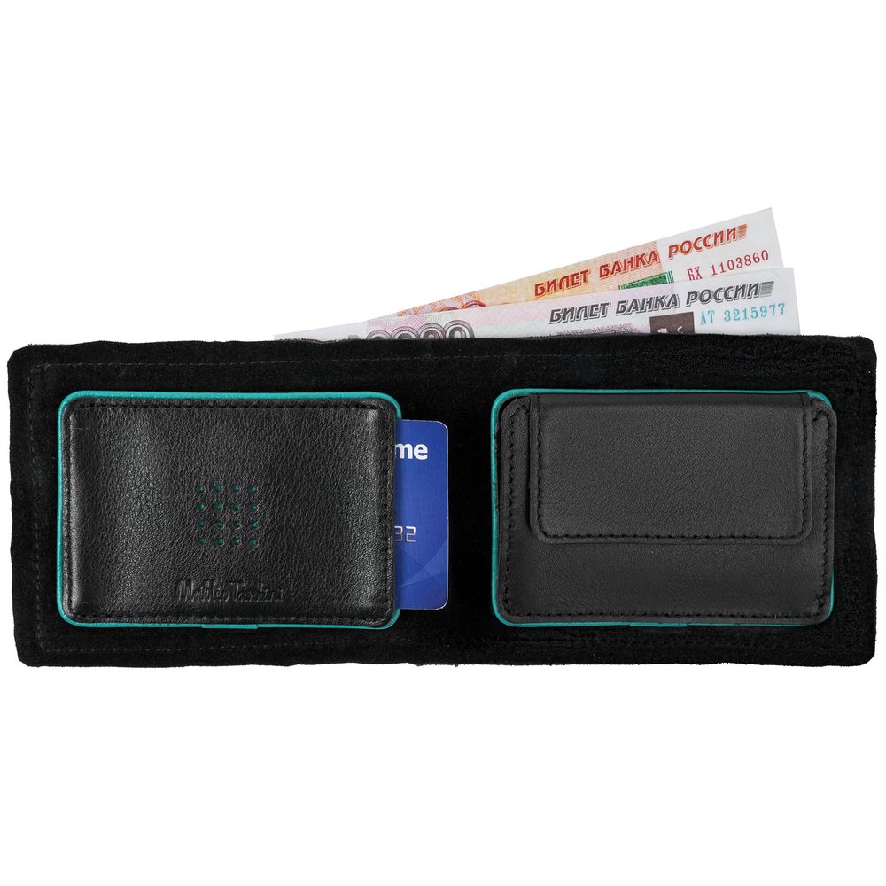 Кошелек Partinico, черный с бирюзовым