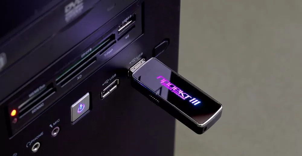 Благодаря встроенной подсветке логотип, размещенный методом лазерной гравировки на зеркальной поверхности, светится разными цветами во время работы флешки.