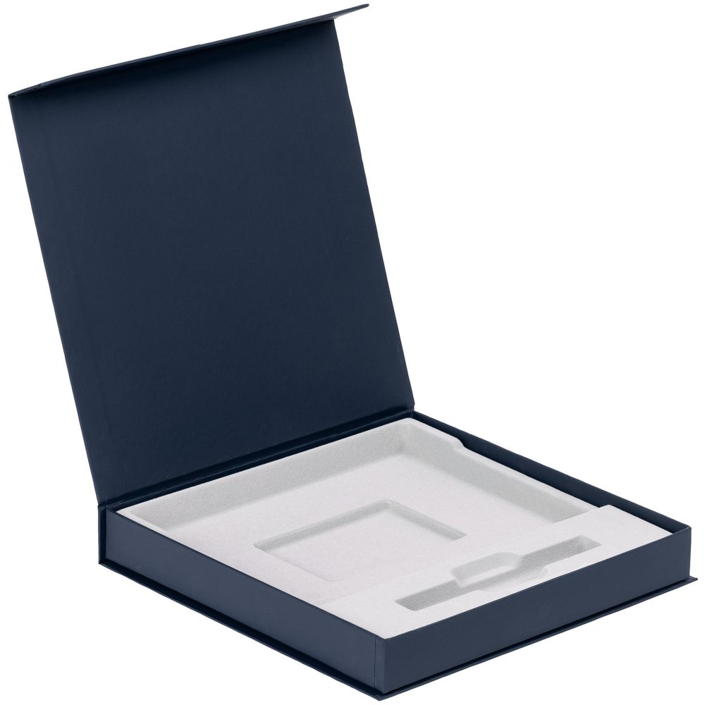 Коробка из переплетного картона, кашированного дизайнерской софт-тач бумагой Senzo, с одной створкой на магните и флокированным ложементом.