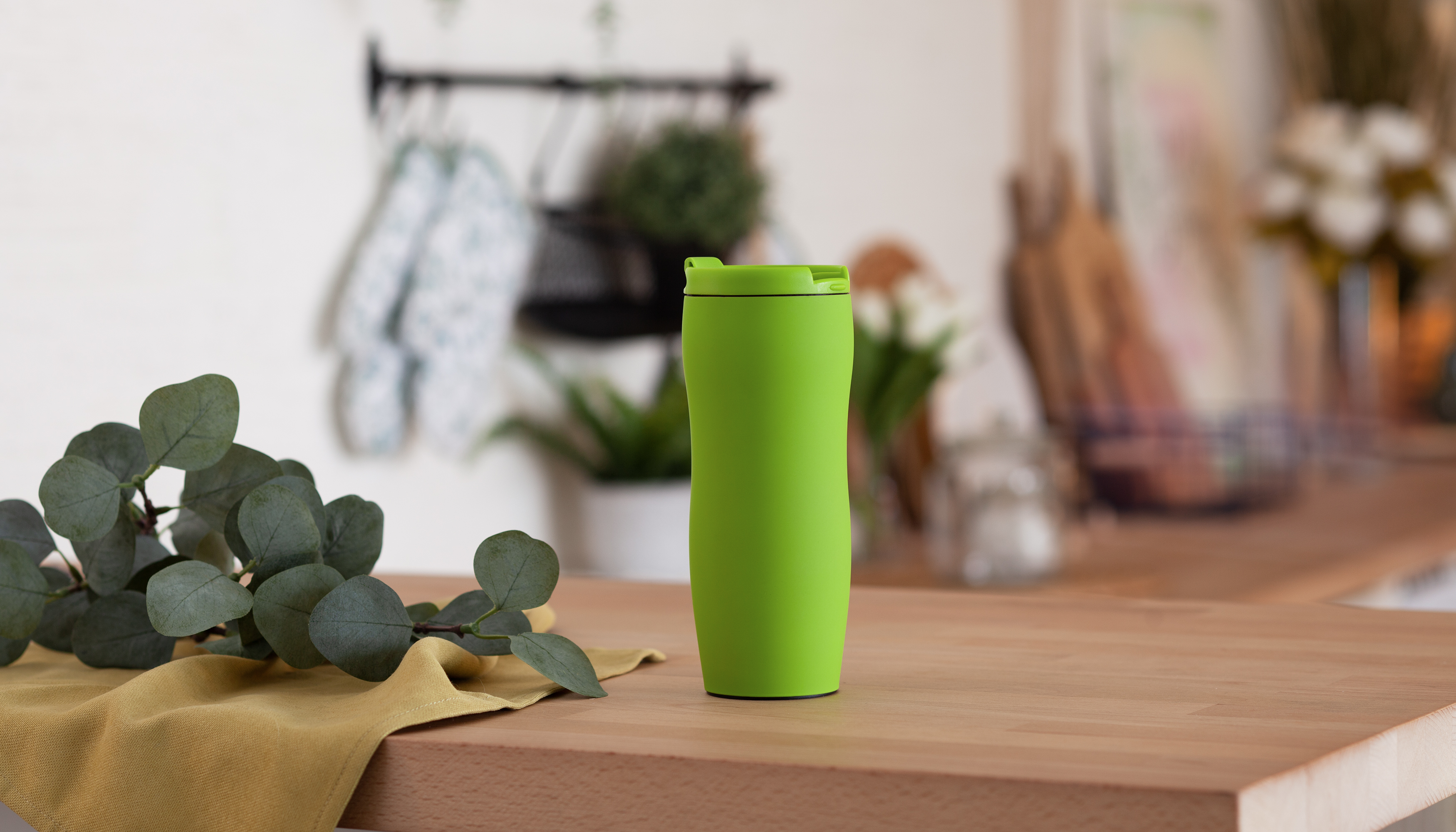Термостакан Монтана 400 мл, покрытие soft touch, зеленое яблоко