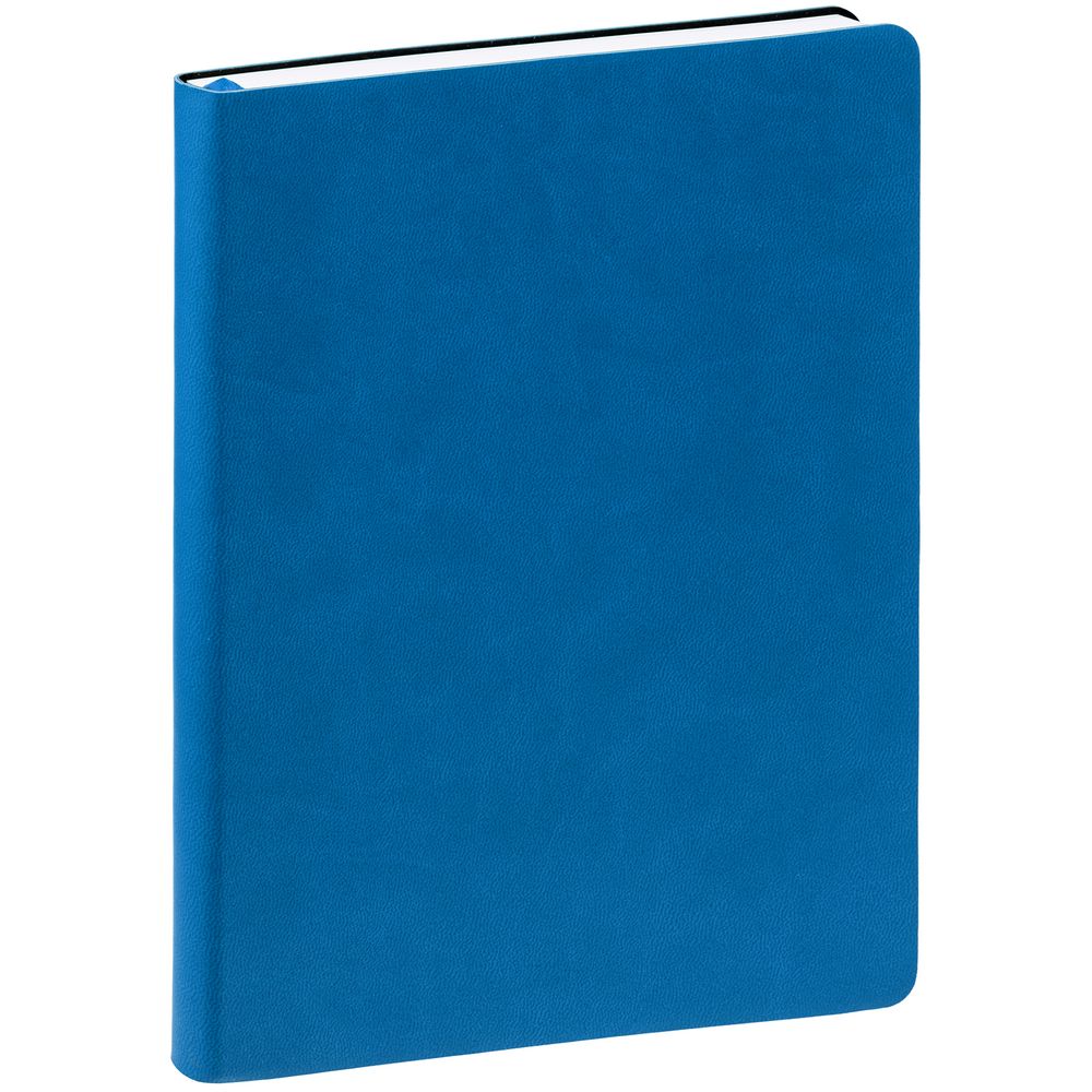 Ежедневник с гибкой обложкой, выполнен из материала Latte, ярко-синий, дополнен ляссе в цвет обложки.