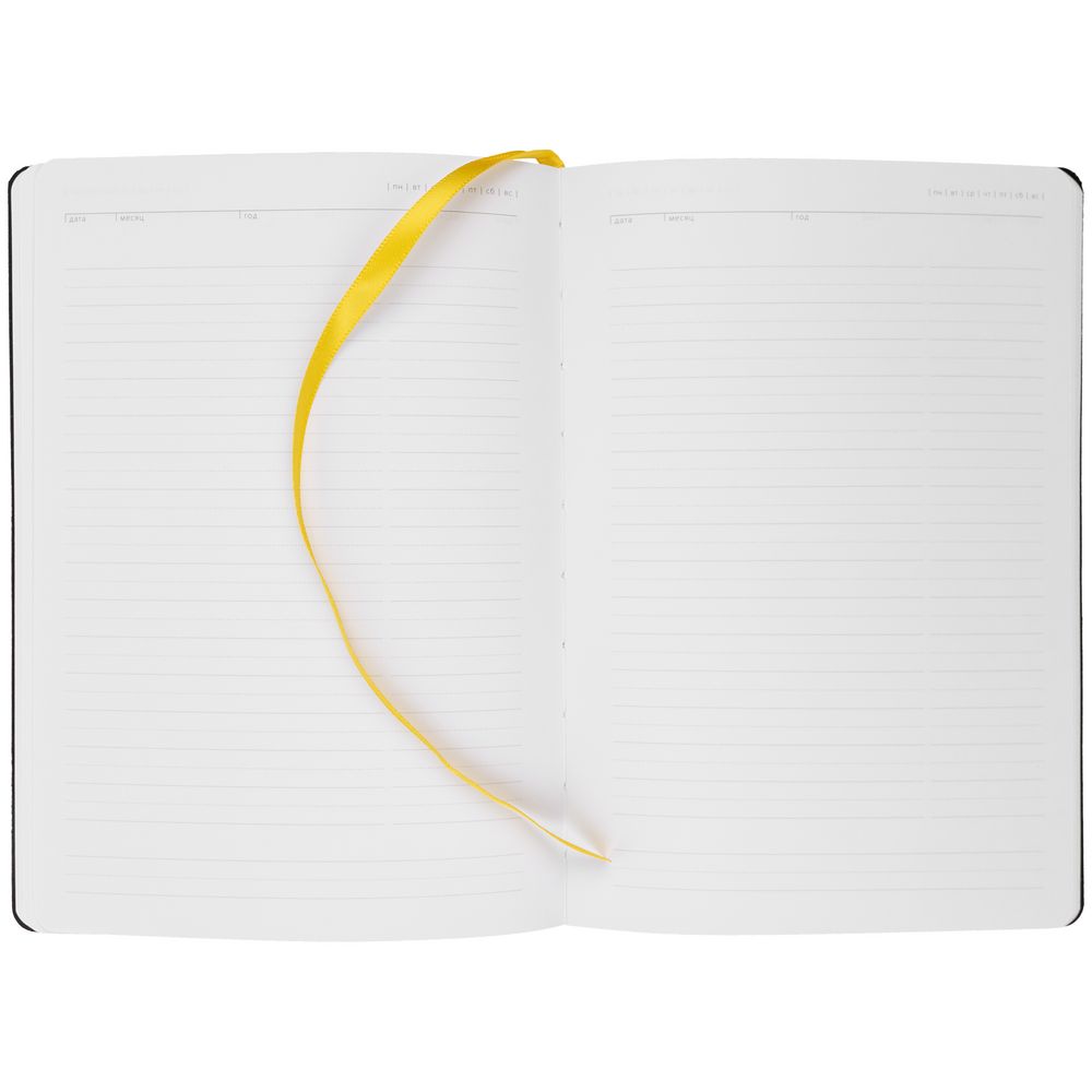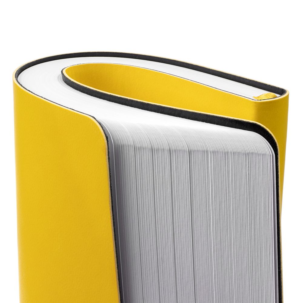 Ежедневник с гибкой обложкой, выполнен из материала Latte, желтый, дополнен ляссе в цвет обложки.