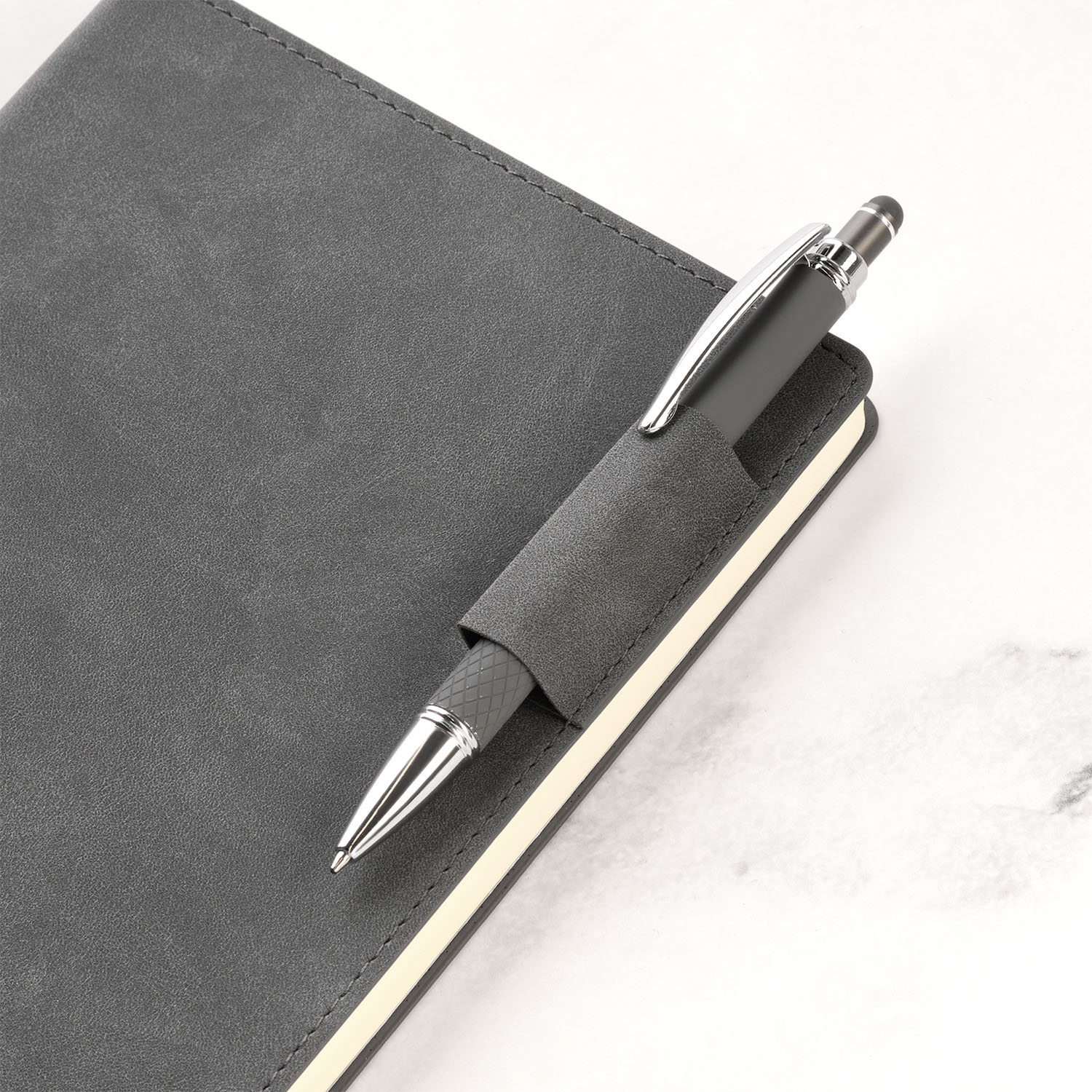 Недатированный ежедневник коллекции Teolo – воплощение элегантности и исключительной функциональности. Мягкая обложка выполнена из эффектного материала под замшу.Тактильно приятная, бархатистая искусственная кожа проработана в мельчайших деталях. Экокожа обладает мелкими вкраплениями и однотонным природным рисунком, которые делают её более фактурной, напоминающей натуральную замшу. Аккуратная прострочка по периметру и удобно расположенная петелька для ручки в сочетании с материалом изделия образуют строгий, но стильный внешний вид. Безупречно серый, грифельный цвет обложки гармонично дополняется спокойными натуральными оттенками форзаца и нахзаца ежедневника.Индивидуальная упаковка пластиковый уголок с логотипом Portobello Italy - есть