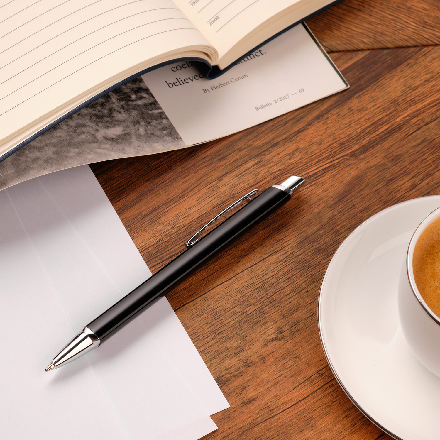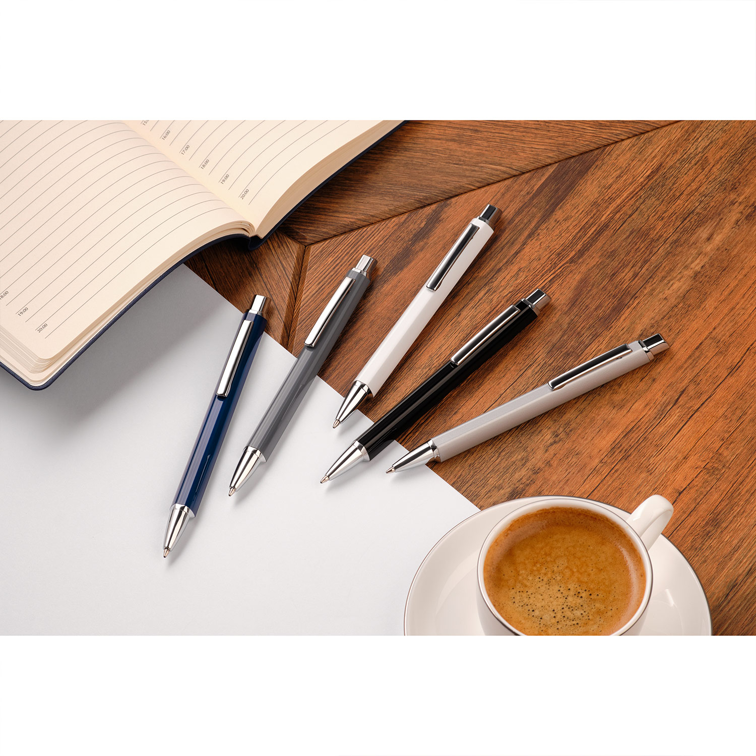 Коллекция: Penta,Материал: алюминийРазмеры: 12 x 142Вес: 18 гр- Описание:Корпус: алюминий,Покрытие: цветноеОтделка: хромированные детали, функциональный, надежный клипМеханизм подачи стержня: нажимнойЦвет чернил: синий, Documental, ГерманияСтержень: шариковый, канцелярскийТолщина пишущего узла: 1 ммДлина письма: ручка рассчитана на 1000м непрерывного письмаПри гравировке вскрывается серым