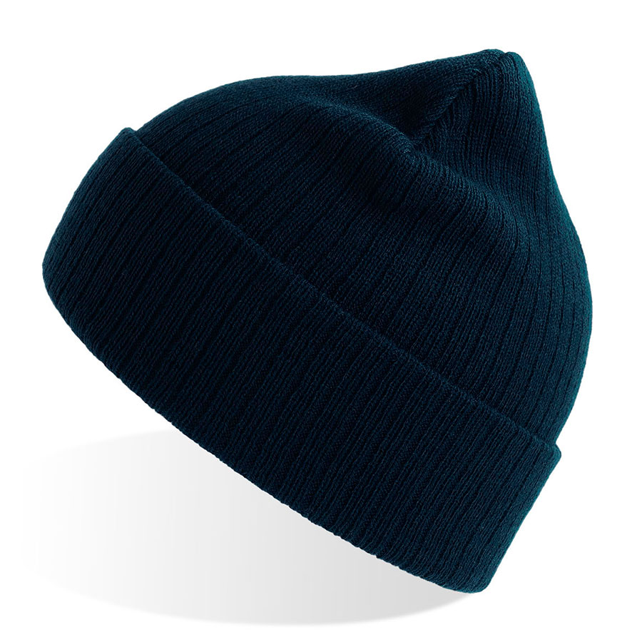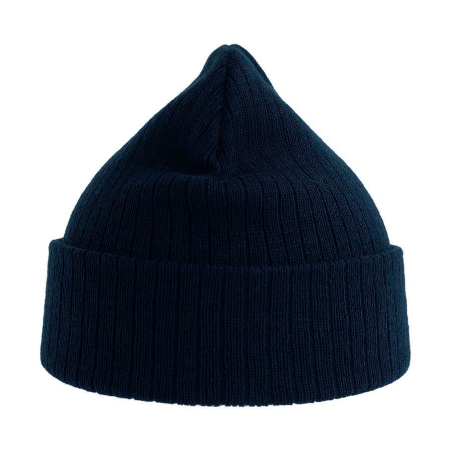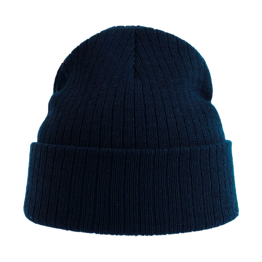 Шапка вязаная RIO с отворотом из материала rPET/рециклированного полиэстера, темно-синий