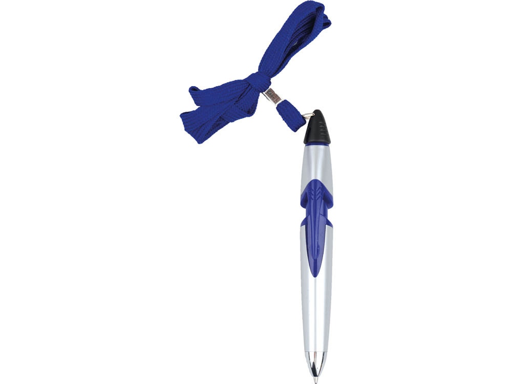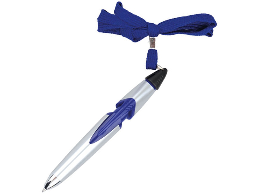 Ручка шариковая на шнуре серебристая/синяя