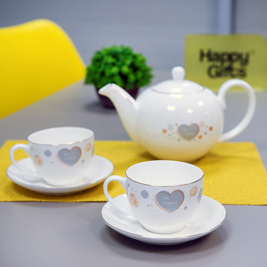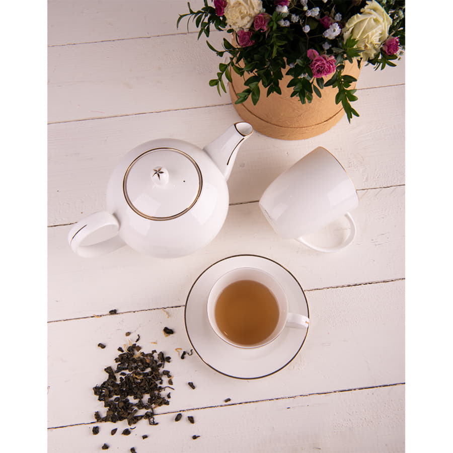 Чайник и две чайных пары GOLD в упаковке, 250мл и 1200мл, костяной фарфор, белый