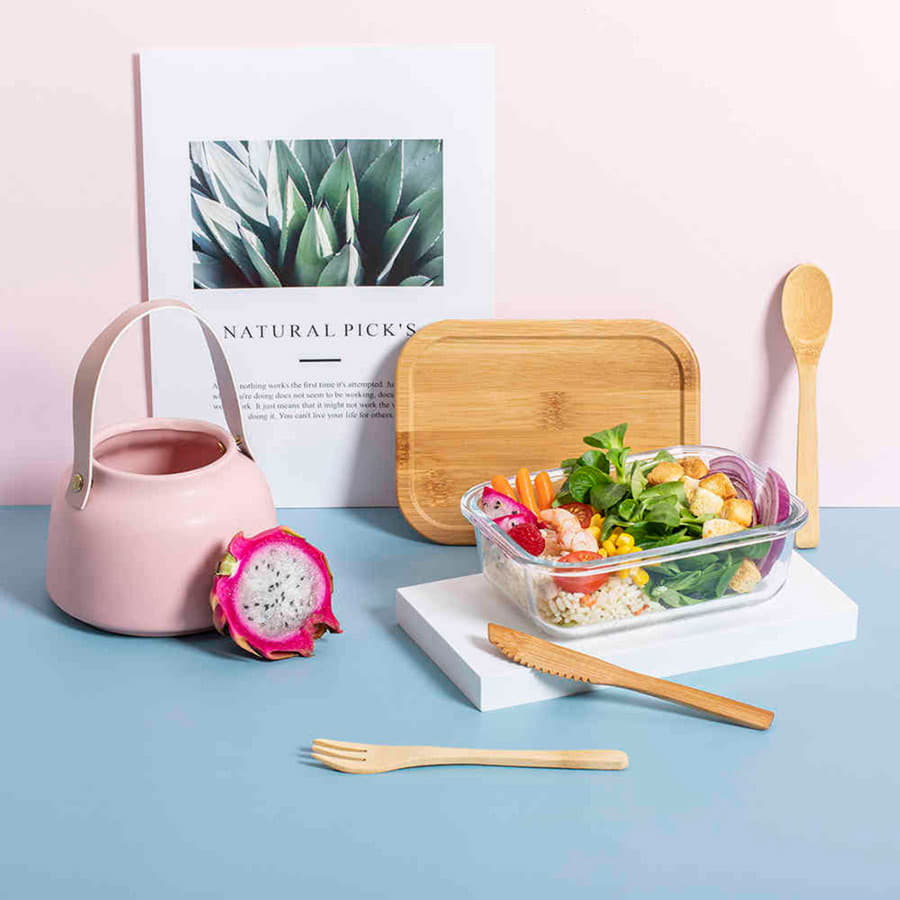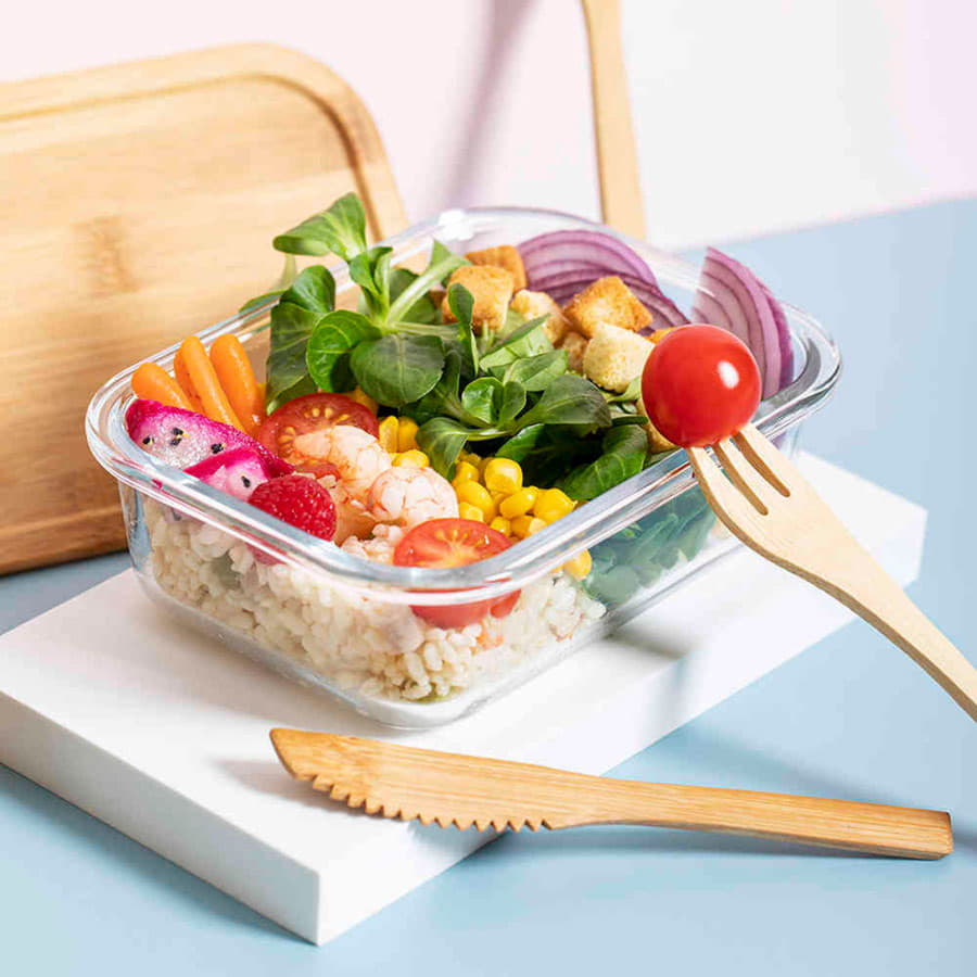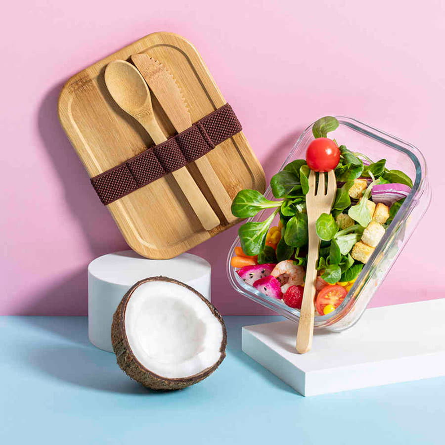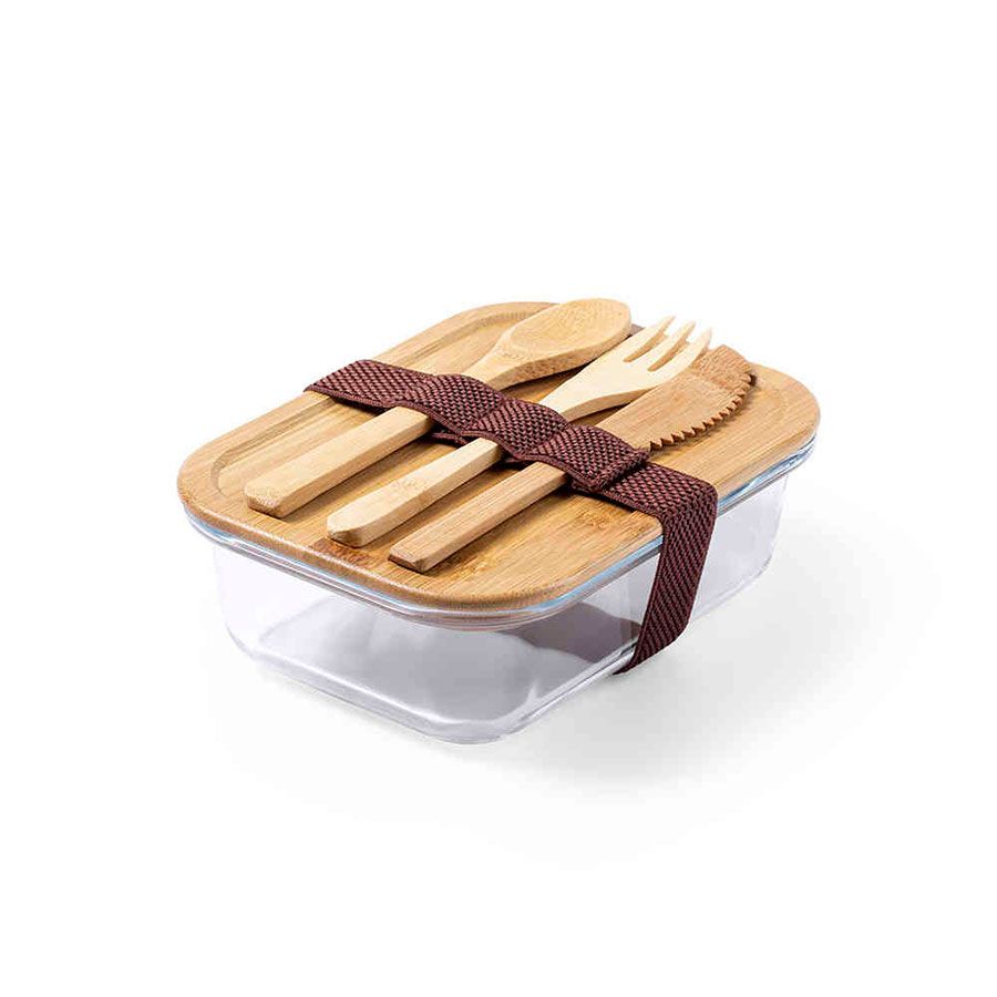 Ланч-бокс BEJAR, ложка, вилка нож в комплекте, стекло/бамбук, прозрачный