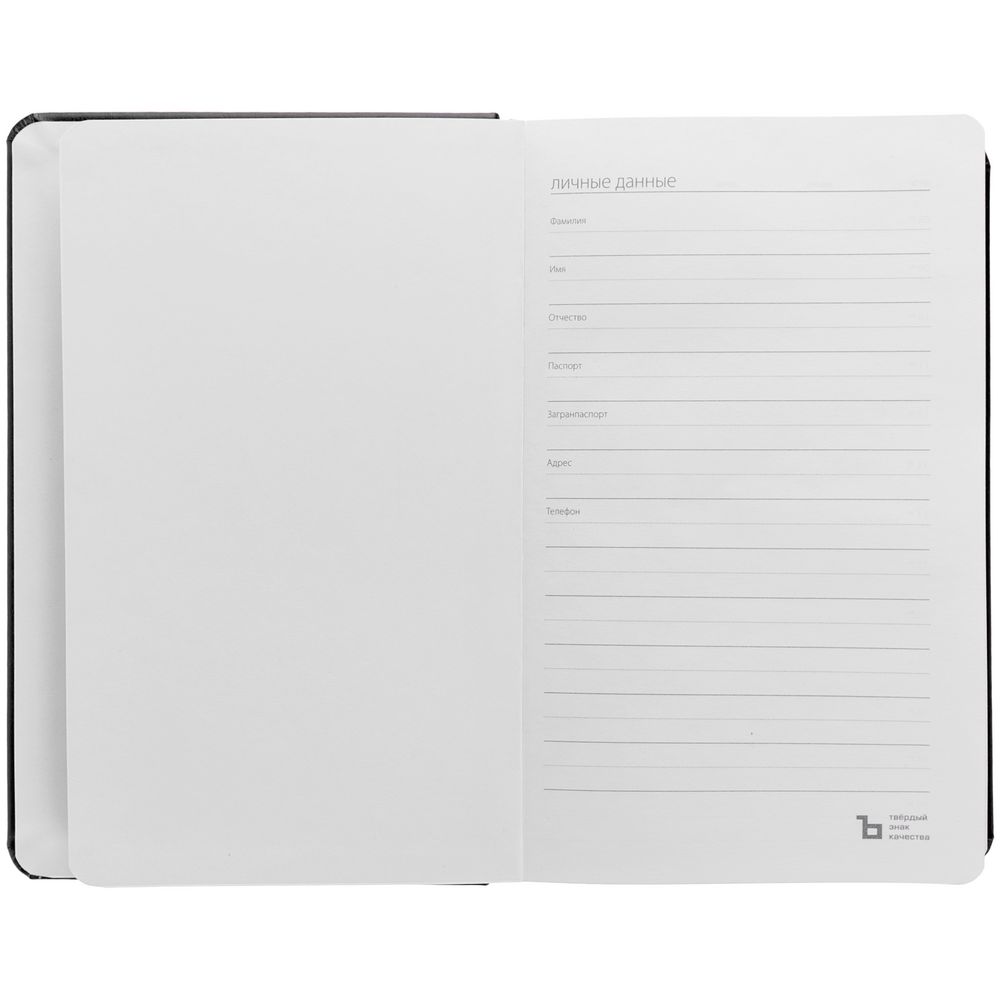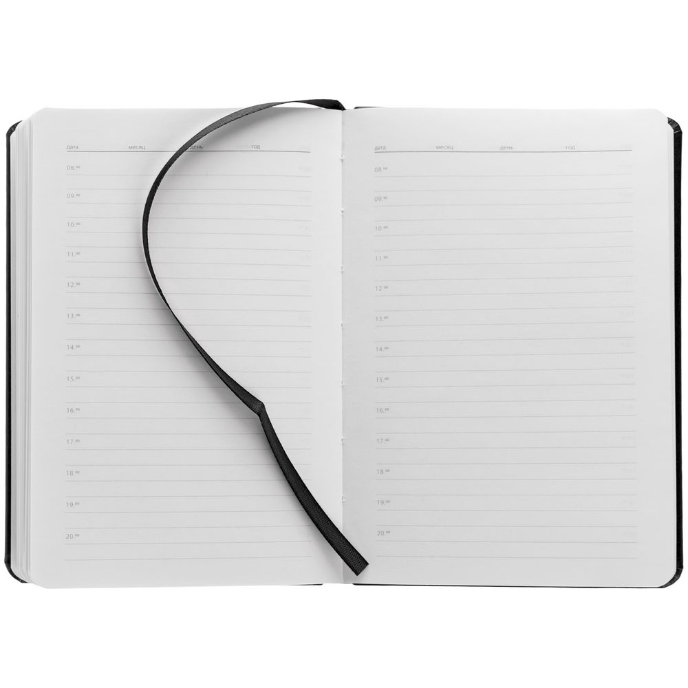 Ежедневник с твердой обложкой, выполнен из материала Waltz, черный АА, дополнен резинкой и ляссе в цвет обложки.