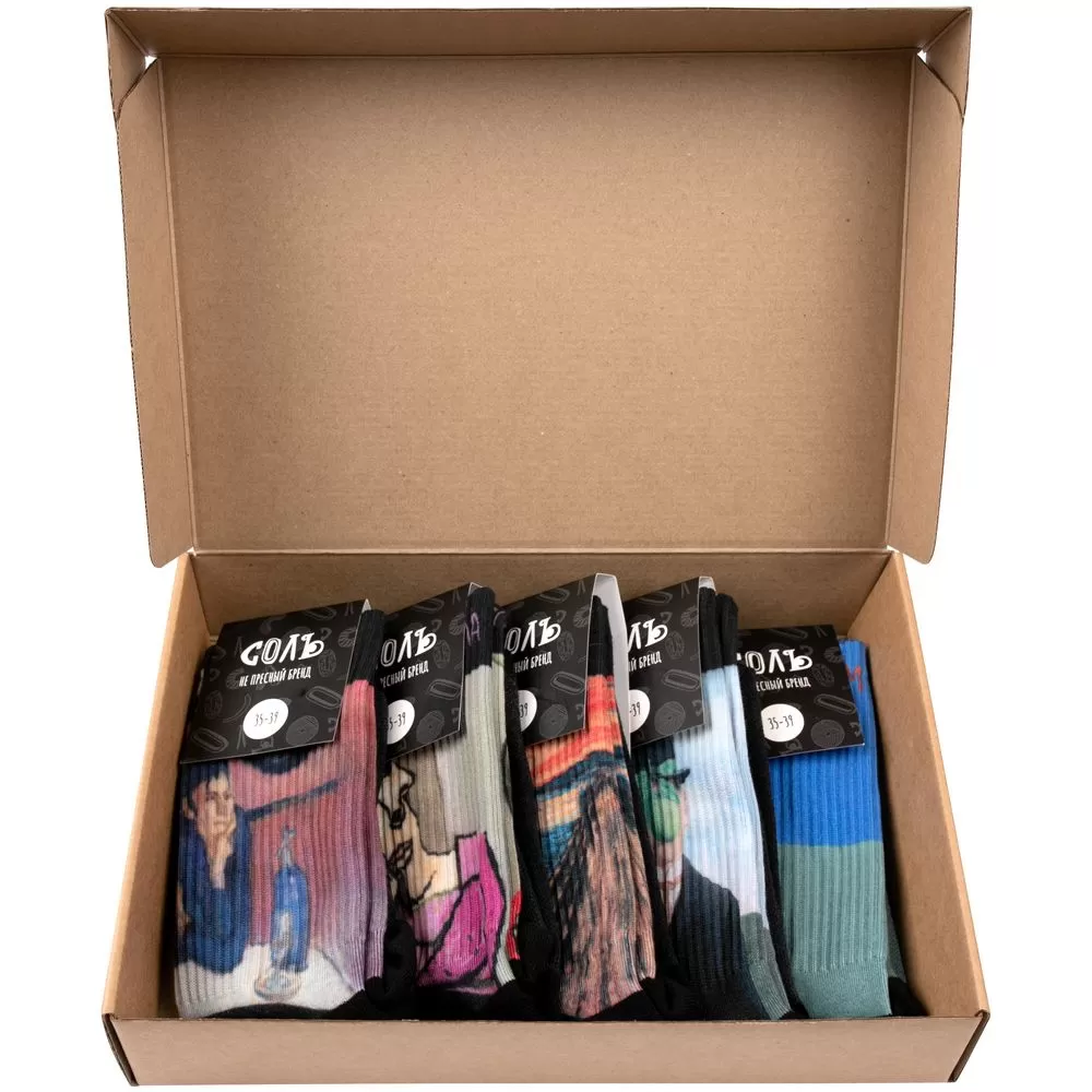Почему-то все картины в музеях вешают на уровне глаз, а ведь ноги тоже достойны созерцать шедевры живописи.В набор входят 5 пар носков:
