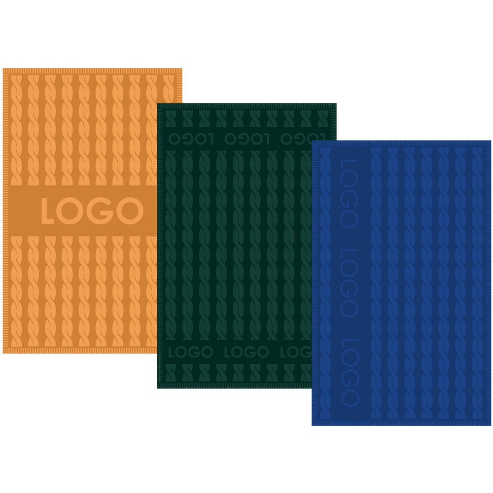 Плед с вывязанным логотипом и рельефным узором в фирменном цвете вашей компании.