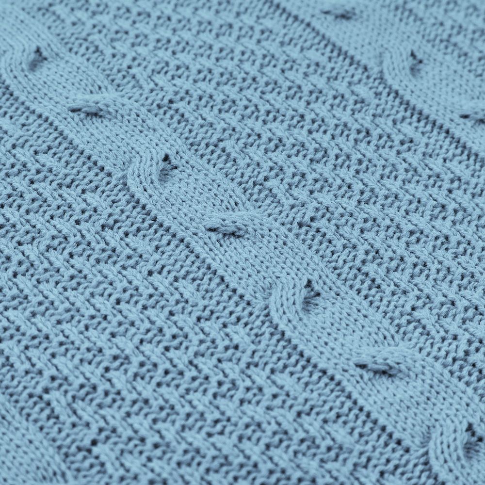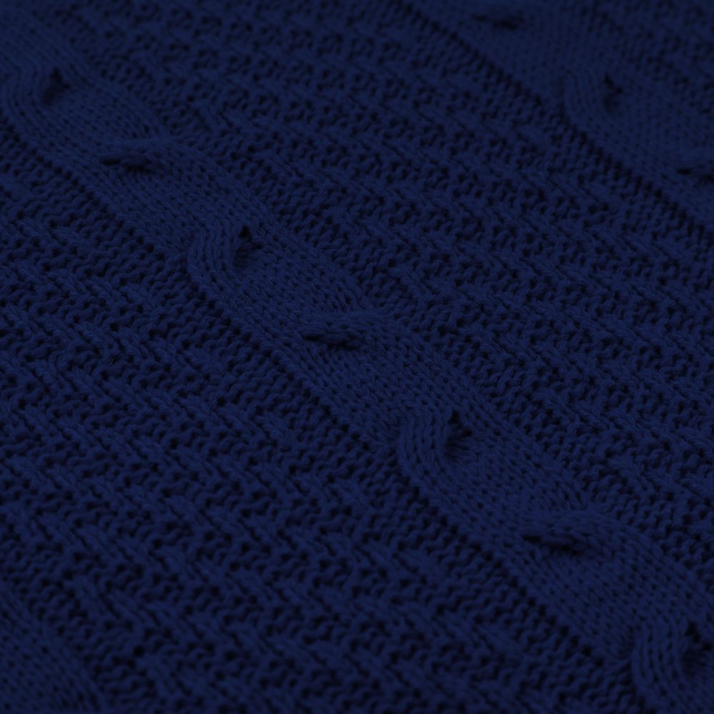Модель: однотонный плед с фактурной вязкой, которая позволяет сделать его воздушным и объемным. Чередуя различные типы петель на гладком полотне, можно вывязать любую графику — логотип, текст, товарный знак.