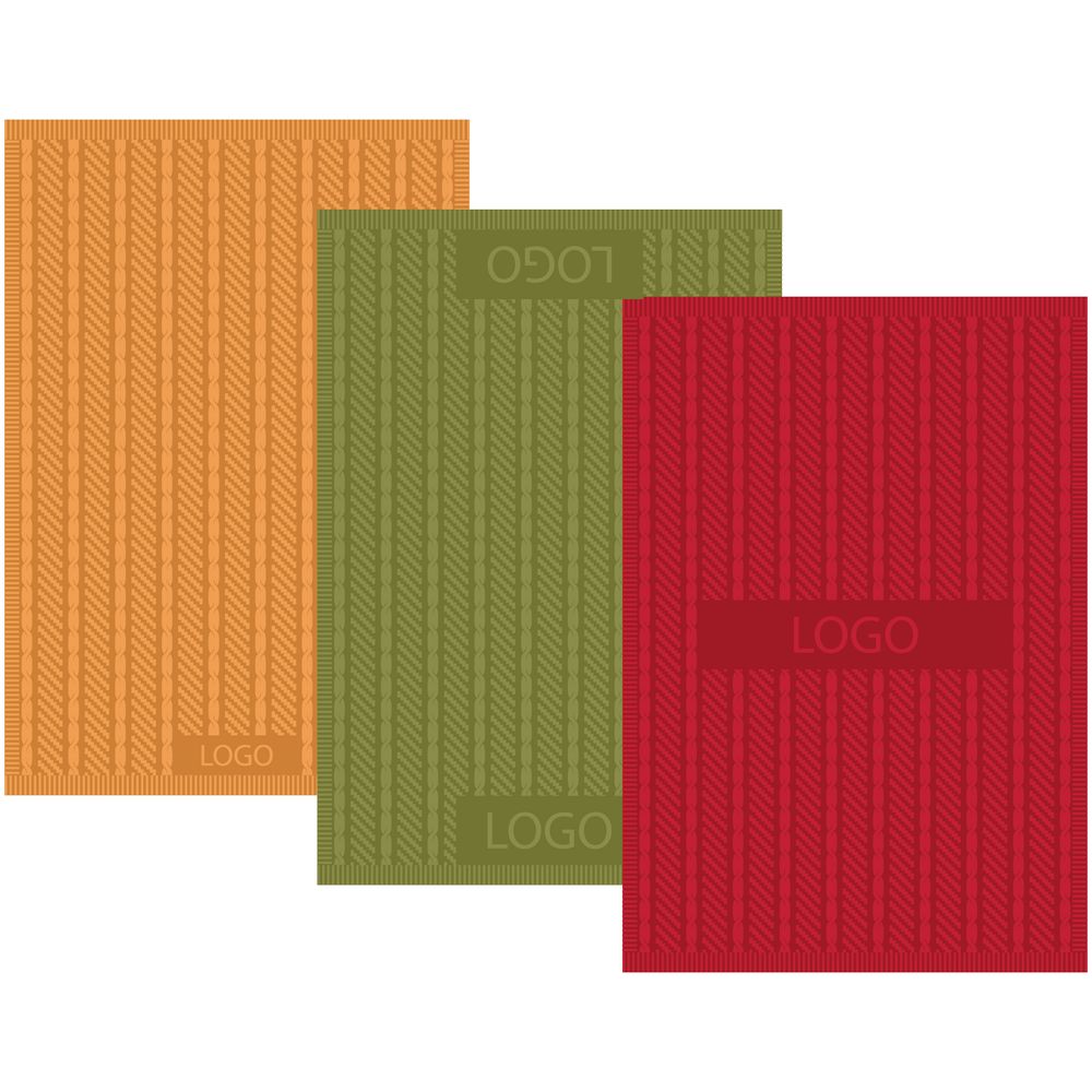 Плед с вывязанным логотипом и рельефным узором в фирменном цвете вашей компании.