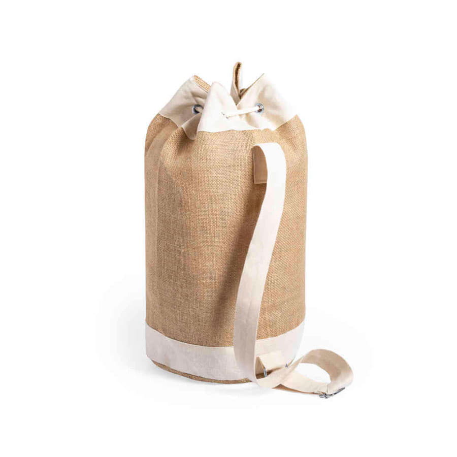 Универсальный двухцветный рюкзак. Модель из джута, детали из хлопка. Регулируемый ремешок и внутренний карман. Основное отделение с усиленными металлическими проушинами и передним карманом для удобной печати.