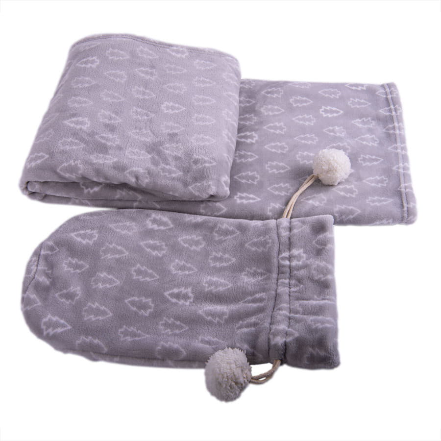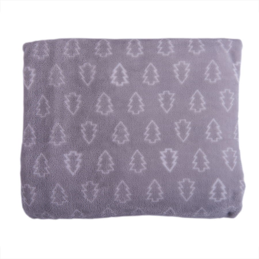 Плед новогодний 'Ёлка' в подарочном мешке; серый; 130х150 см; фланель 280 гр/м2, серый, белый