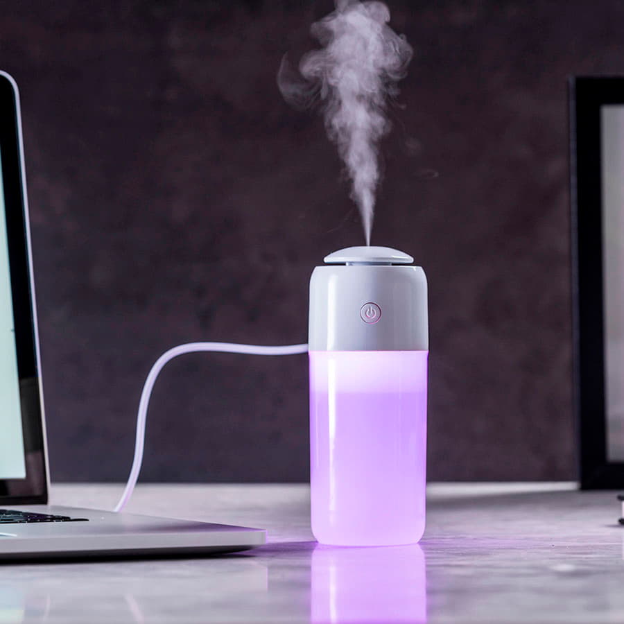 Увлажнитель работает от USB источника питания (5 Вольт). Это может быть USB разъем вашего ноутбука, сетевой адаптер, пауербанк или USB порт вашего автомобиля. Это делает увлажнитель поистине универсальным, так как не ограничивает места его использования.