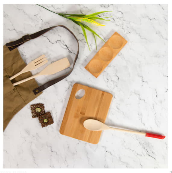 Разделочная доска со скругленными углами и отверстием для удобства использования, выполнена из бамбука. Материал отличается следующими преимуществами: