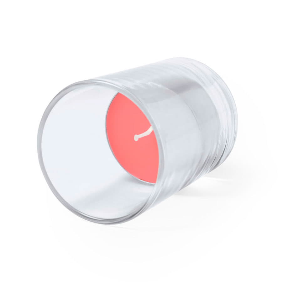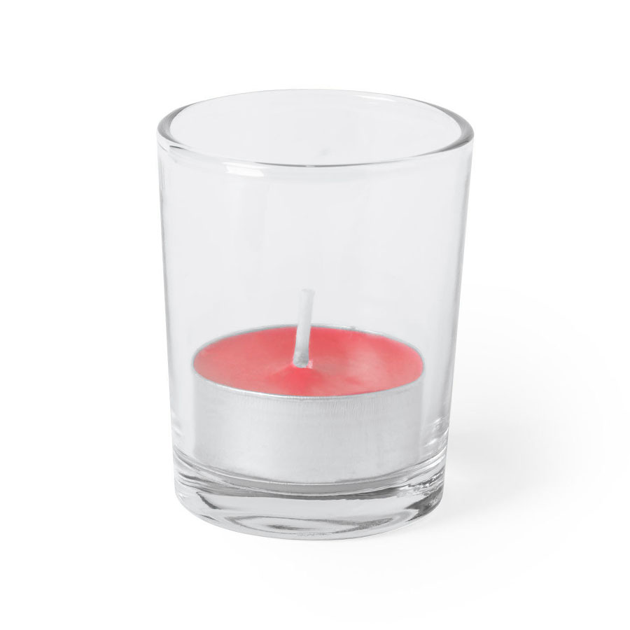 Свеча с ароматом клубники в стеклянном стаканчике.
