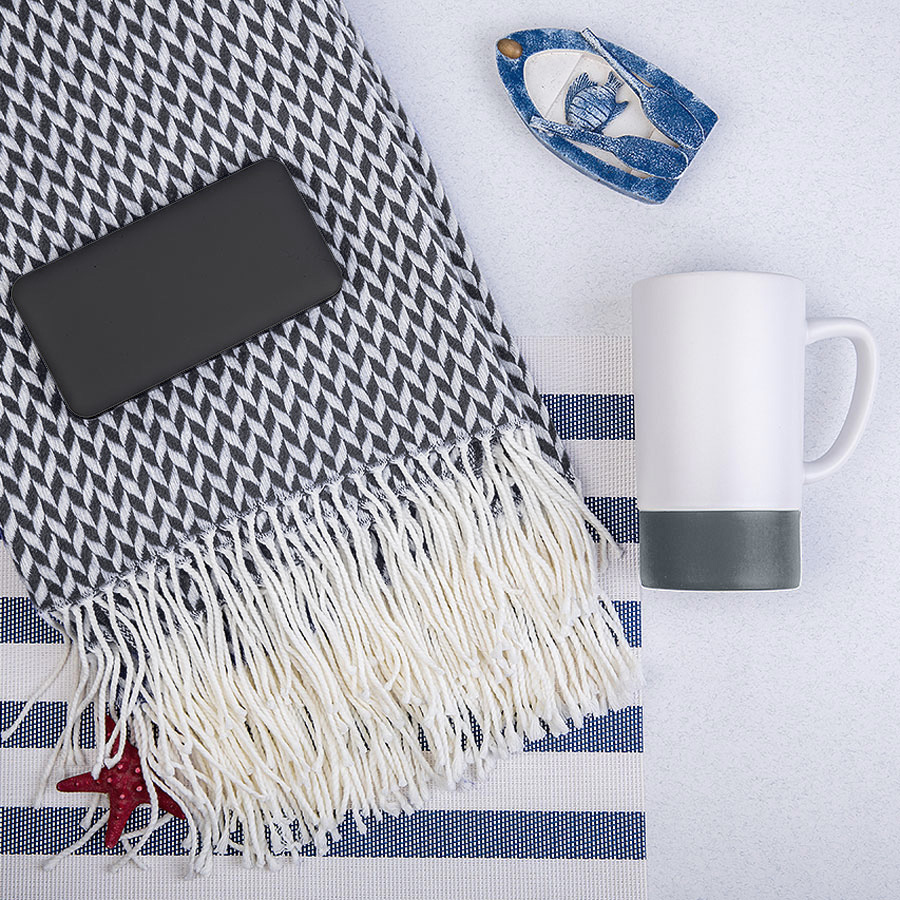 Набор подарочный REALSAILOR: универсальный аккумулятор, плед, кружка, подарочная коробка, серый, серый, белый