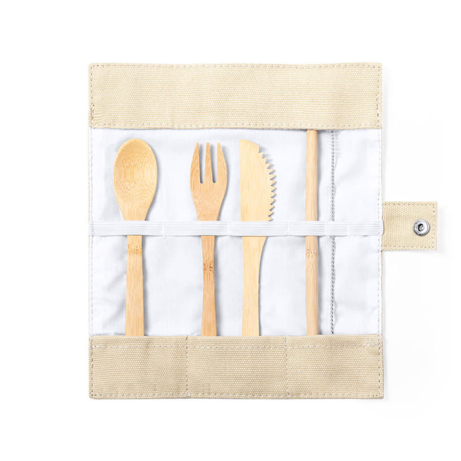 Набор столовых приборов CORPAX в чехле: ложка, вилка, нож, трубочка для питья и ершик для чистки трубочки, бежевый