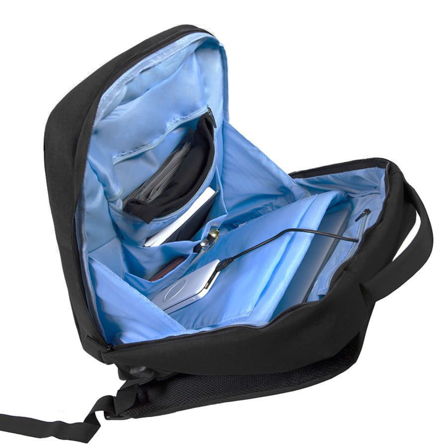 · USB порт для подзарядки вашего устройства (внутри рюкзака расположен кабель для соединения с power bank)