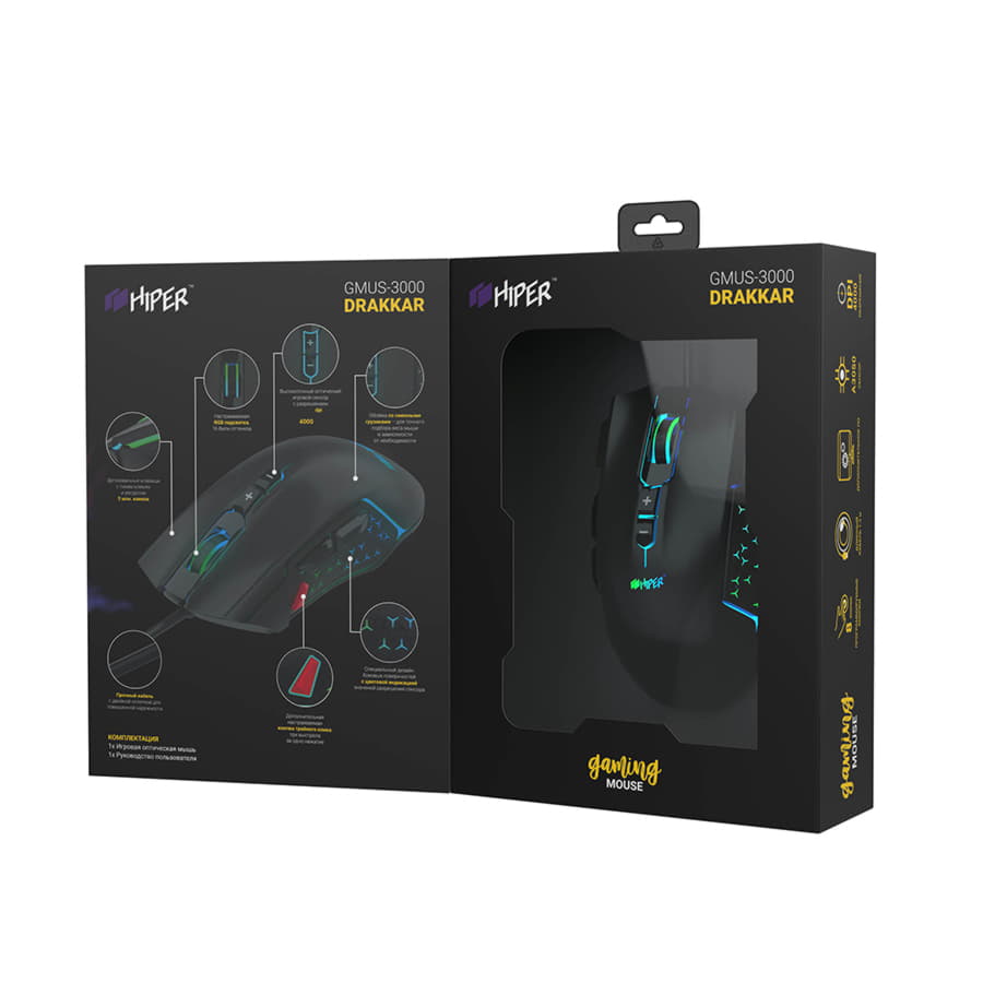 Мышь игровая HIPER DRAKKAR GMUS-3000, черный