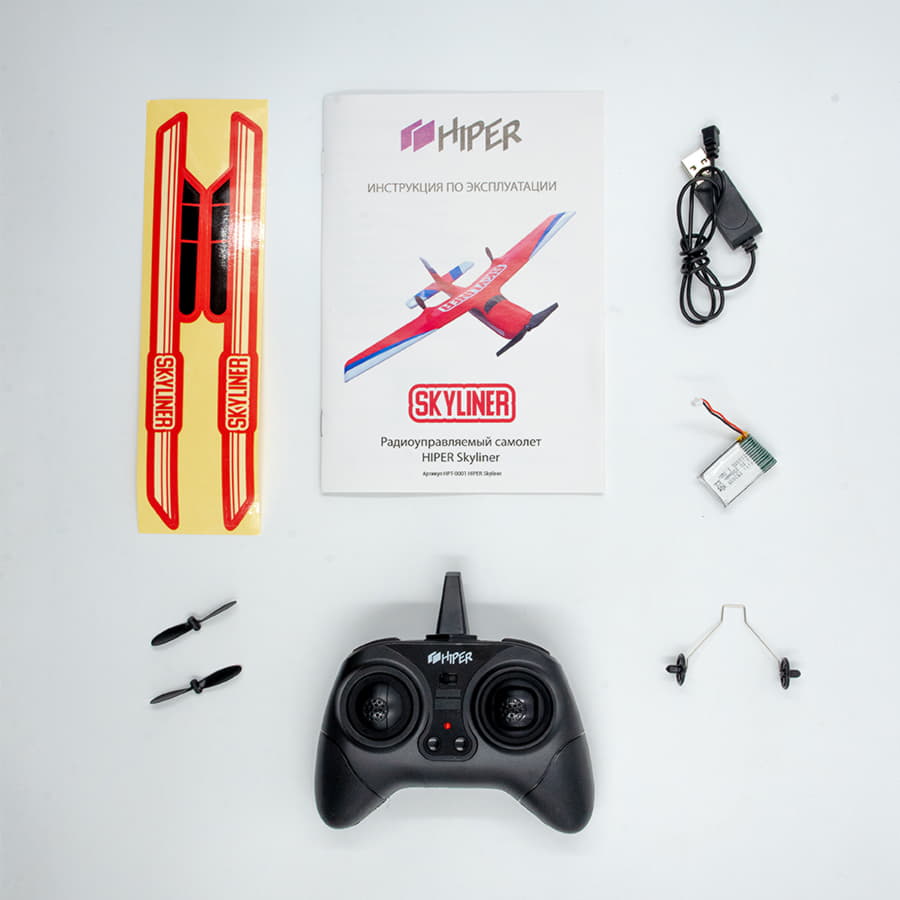 'Реалистичный радиоуправляемый самолёт HIPER «SKYLINER» специально спроектирован для полета на небольшом стадионе, теннисном корте или поляны в ближайшем парке. Модель управляется по двум каналам - контроль оборотов двигателя и руль направления.