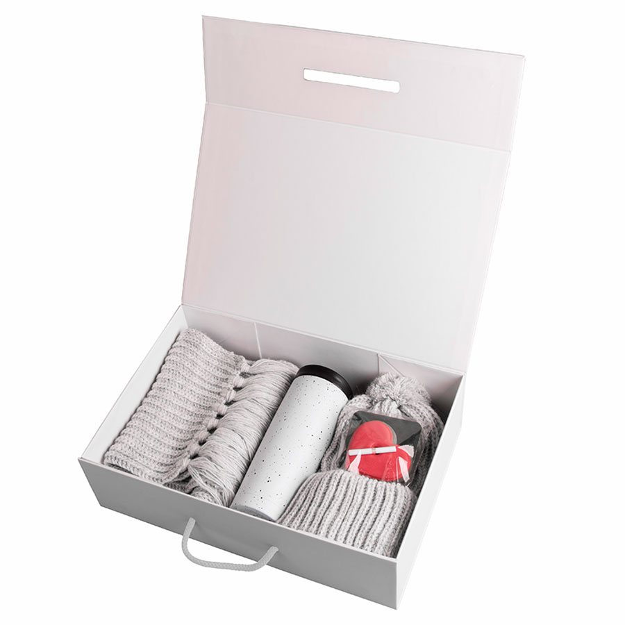 Подарочный набор WINTER DREAMS: коробка, шапка, шарф, термокружка, печенье с предсказанием, белый, белый, серый