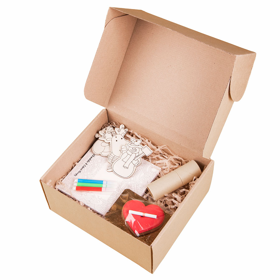 Подарочный набор KID`S ART: коробка, карандаши, раскраска, игрушки, печенье c предсказанием, разные цвета