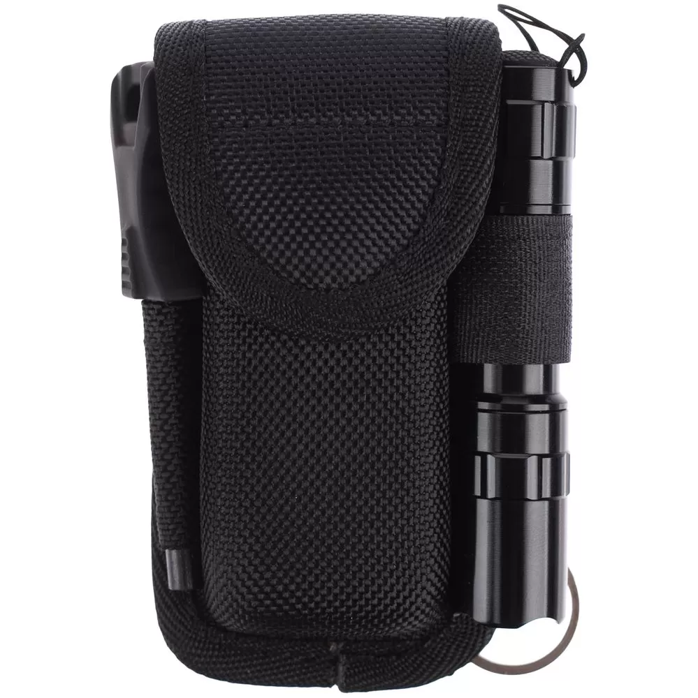 В комплекте чехол, фонарик (20 лм, работает от 1 батарейки типа АА 1,5 В, в комплект не входит) и огниво.