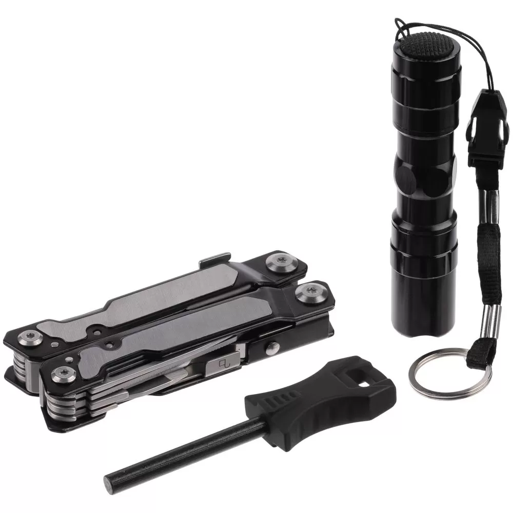 Набор Forster: мультиинструмент, фонарик, огниво, черный