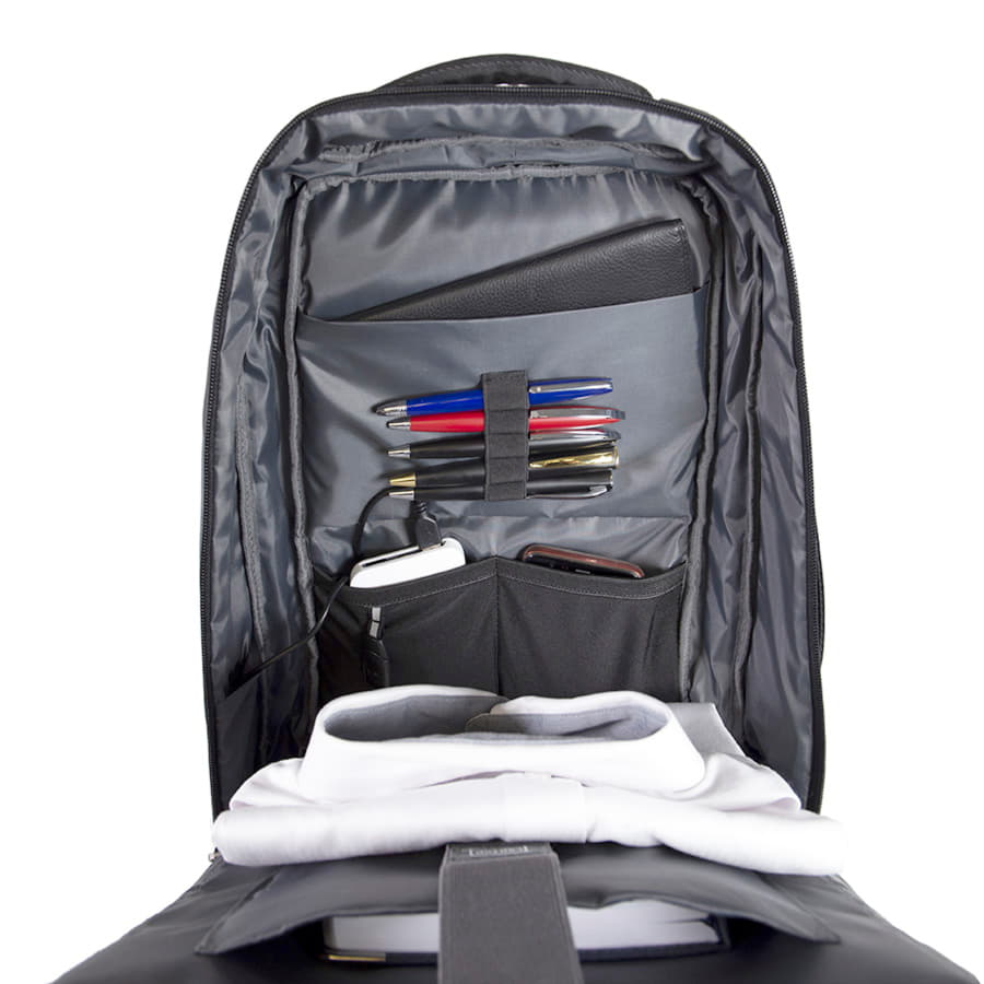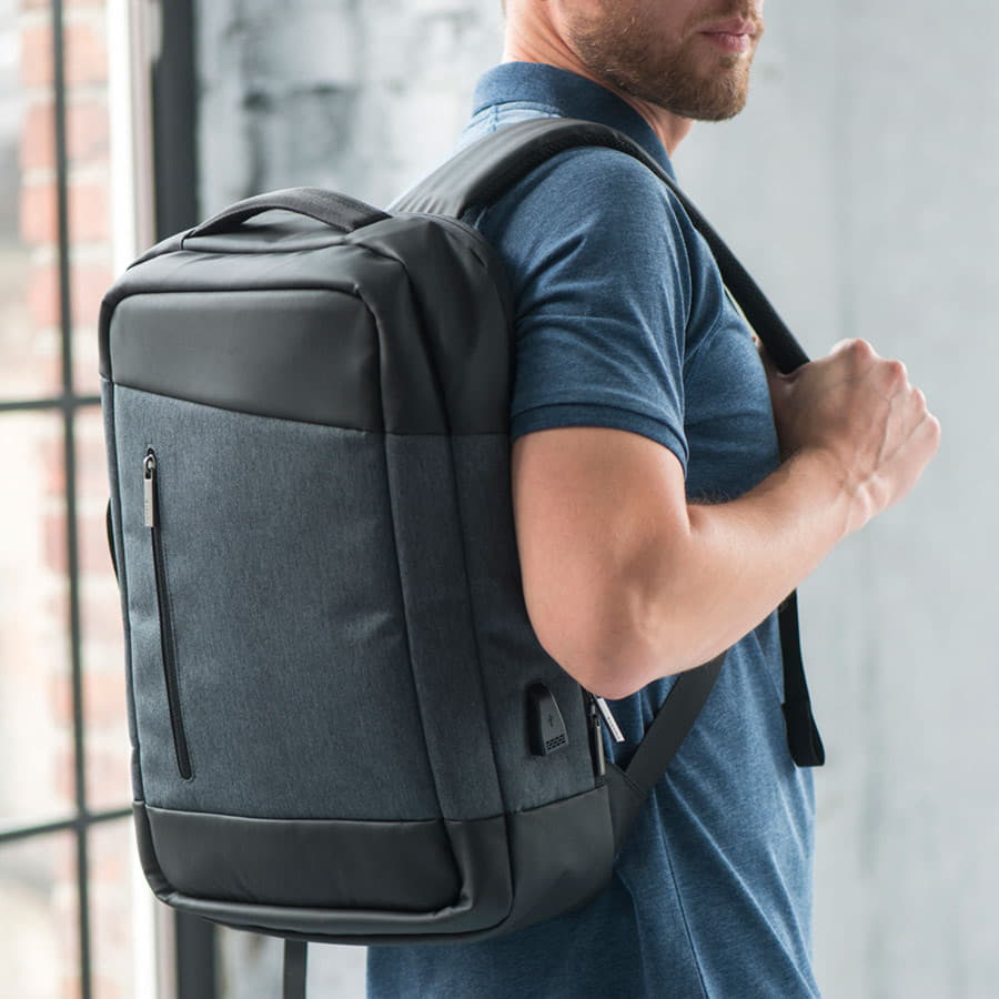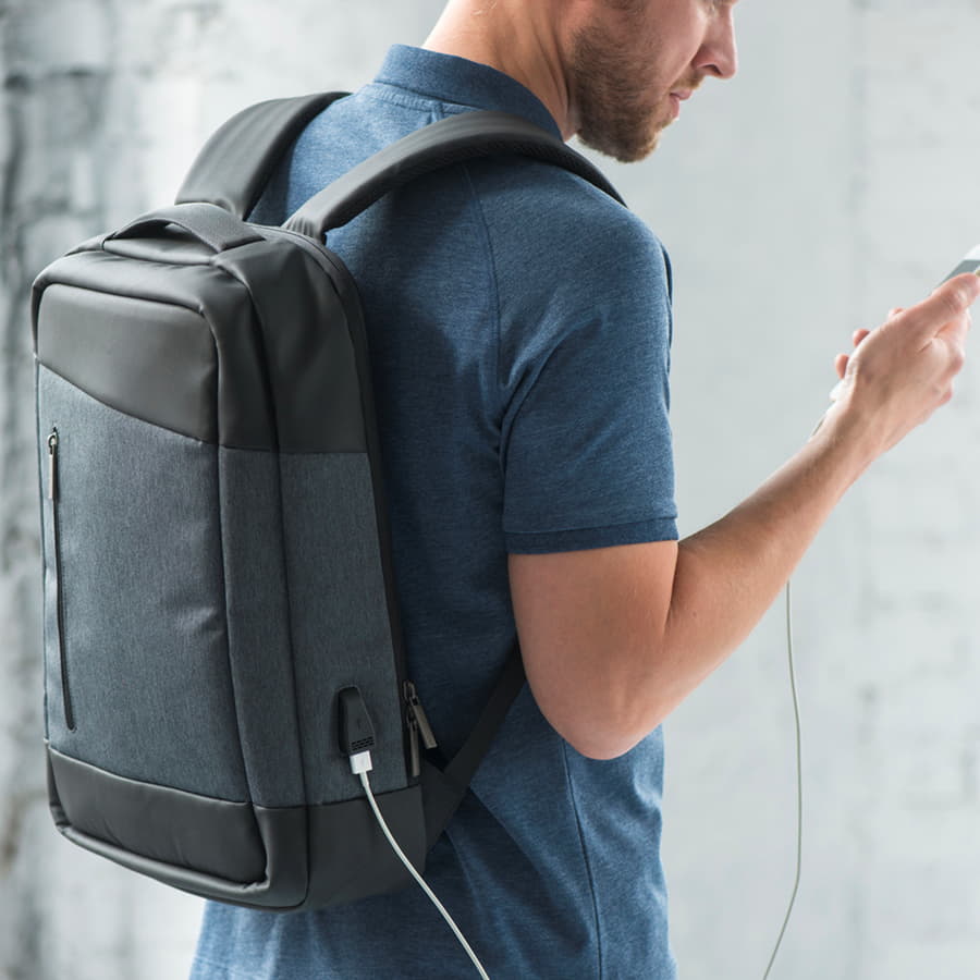 • USB порт для подзарядки вашего устройства (внутри рюкзака расположен кабель для соединения с power bank)