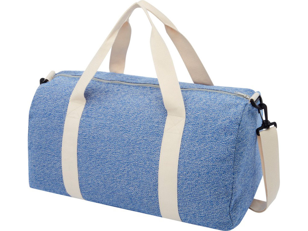 Спортивная сумка из переработанного хлопка и полиэстера с регулируемым плечевым ремнем. Вторичный хлопок изготавливается из отходов, предназначенных для потребления, которые производятся текстильными фабриками в процессе резки. Похожие цвета смешиваются вместе, поэтому дополнительная окраска не требуется. Из-за особенностей переработанного хлопка возможны незначительные отклонения в цвете. Благодаря этому сумка выглядит более аутентичной.