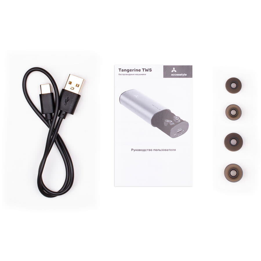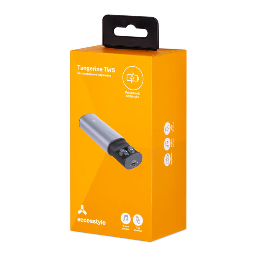 Беспроводные наушники с пауэрбанком 5000 мАч ACCESSTYLE TANGERINE TWS, серебристый
