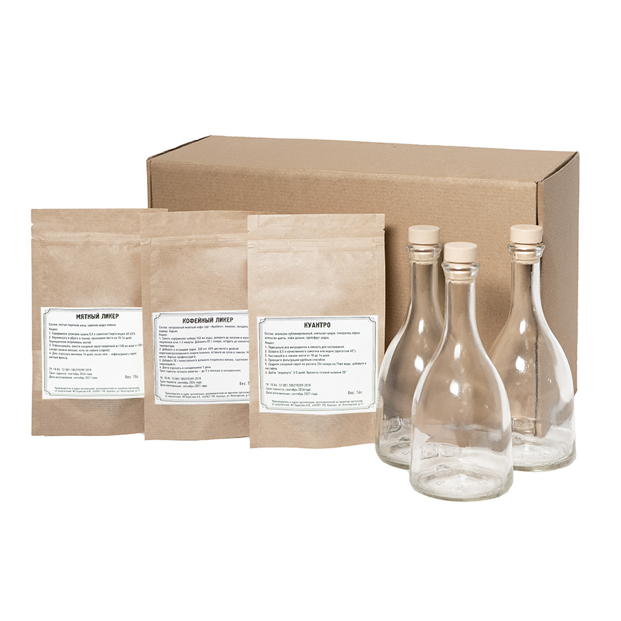 Набор 'Сам себе сомелье' для приготовления авторских напитков Мятный, Кофейный и Куантро ликеры, бежевый, ликеры