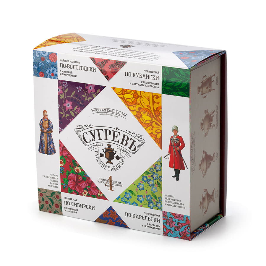 Набор Сугревъ в картонной коробке с 4-я чаями, разные цвета