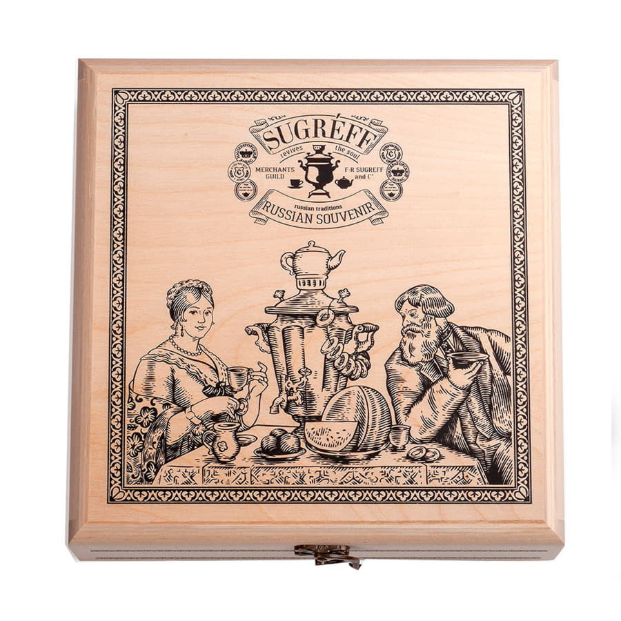 Подарочный набор из 7 эксклюзивных купажей листового чая, трав и ягод, характерных для разных регионов России, в сувенирной шкатулке из массива берёзы.