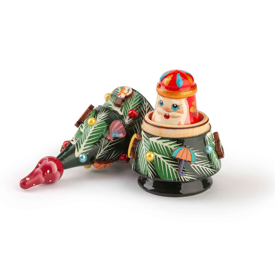 Елка - матрешка – милый подарок, который не оставит равнодушным ни ребёнка, ни взрослого. Изделие содержит в себе две игрушки поменьше. Каждый элемент сделан и раскрашен вручную.
