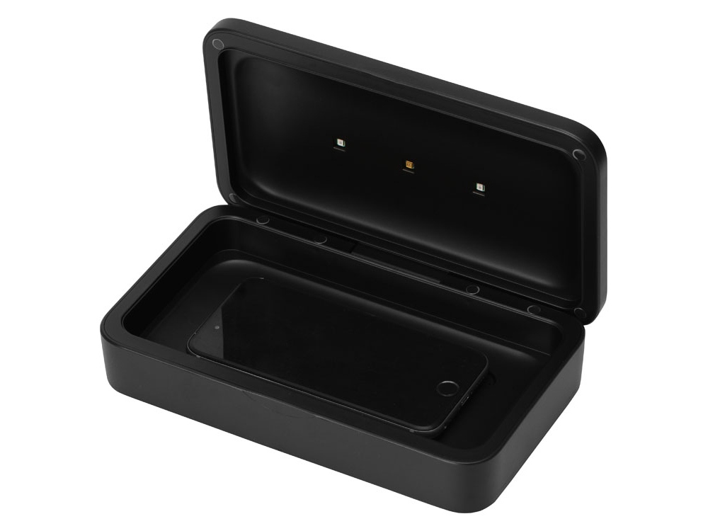 Универсальный стерилизатор эффективно уничтожает 99,9% вирусов и бактерий со всех поверхностей помещенных в него предметов. Подходит для стерилизации смартфонов, часов, наушников, ключей, масок, канцелярии и других небольших вещей. Стерилизатор Sector работает от USB, источником может быть ноутбук, ПК, сетевой адаптер или внешний аккумулятор (повербанк). Чтобы начать процесс дезинфекции достаточно положить предметы внутрь, закрыть крышку и нажать кнопку. Отсек для стерилизации 19,2 х 10 х 1,2 см. Стерилизация автоматически завершится через 5 минут. УФ-стерилизатор оснащен автоматической системой безопасности – УФ-лампы отключаются при открытии крышки. В центре крышки расположен модуль беспроводной зарядки. Чтобы активировать функцию ароматерапии - просто добавьте 2-3 капли эфирного масла в ячейку аромадиффузора.