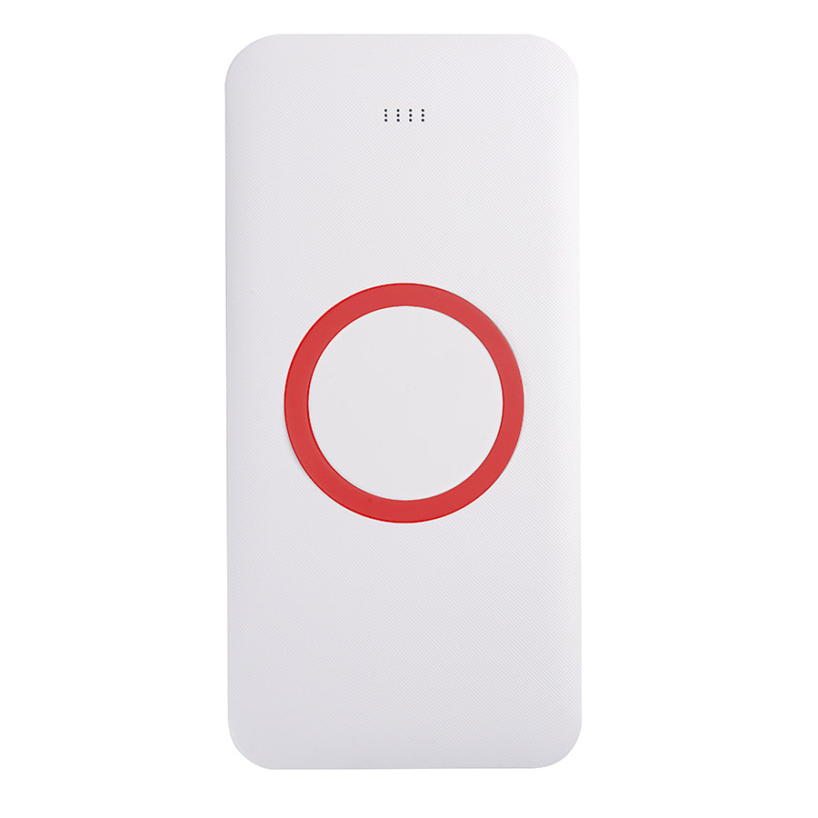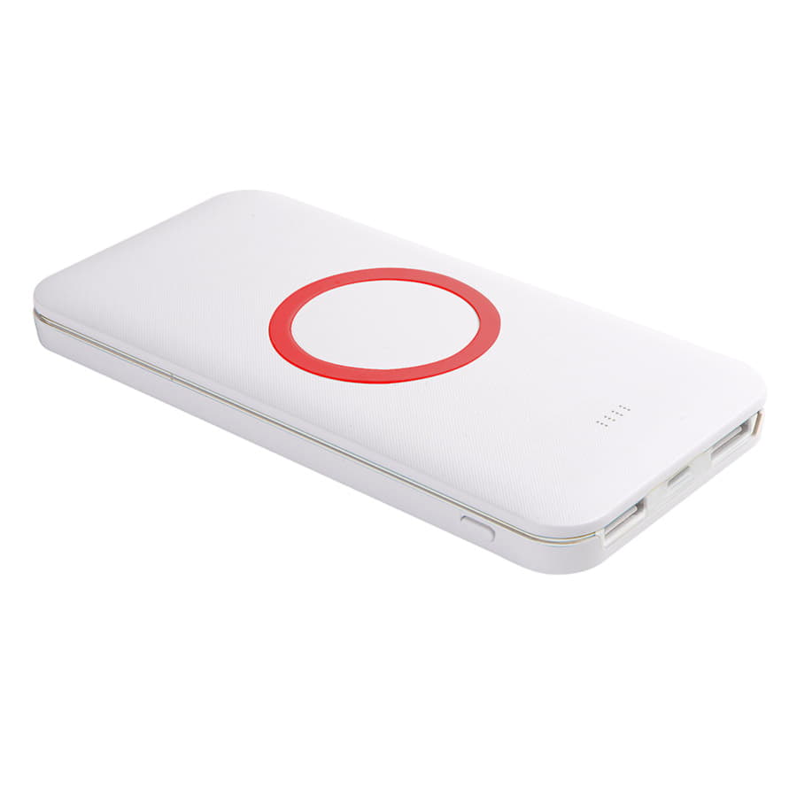 Универсальный аккумулятор с функцией беспроводной зарядки SATURN,белый с красным,15х7,3х1,2с, белый, красный