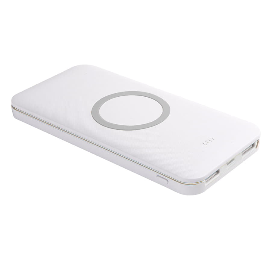 Универсальный аккумулятор с функцией беспроводной зарядки SATURN,белый с серым,15х7,3х1,2см, белый, серый