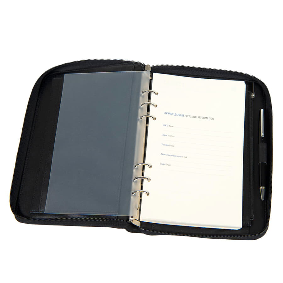 Ежедневник недатированный Chief, A5, на молнии, черный, кремовый блок, подарочная коробка