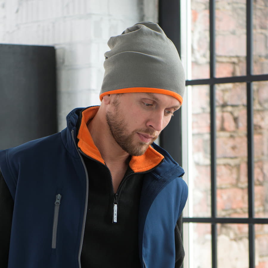 Удлиненная легкая двухслойная шапка мелкой вязки (риб 2x2) идеально подойдет для занятий спортом и прогулок на свежем воздухе. Благодаря использованию двух цветов и особой конструкции, одна шапка сможет заменить несколько. Ваш образ зависит только от вашего настроения! Снимите, вывернете и снова наденьте.