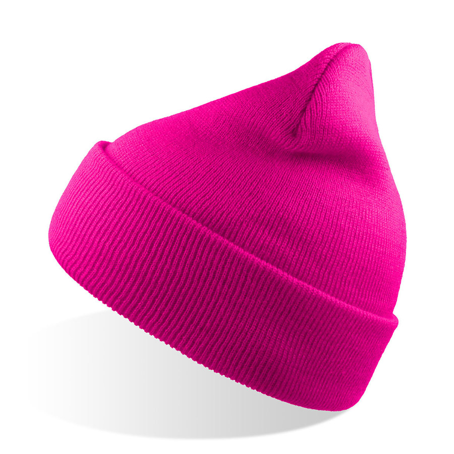 Шапка вязаная двойная WIND с отворотом, неоновый розовый
