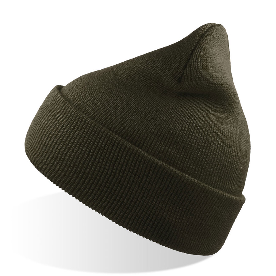 Шапка вязаная двойная WIND с отворотом, оливковый
