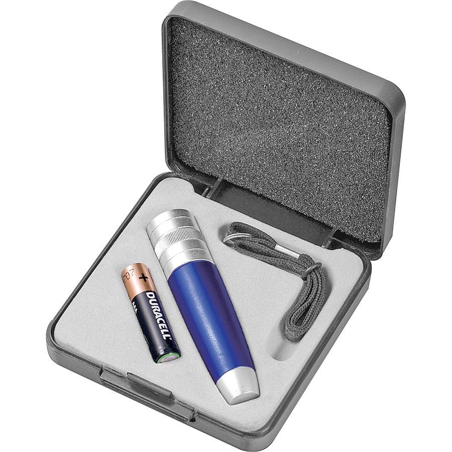 Набор: фонарь, ланъярд и батарейка, серебристый, синий